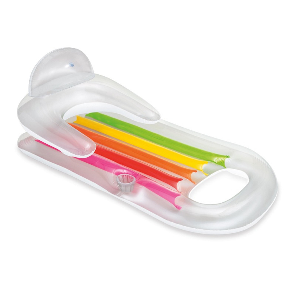 Dimensions : 160 x 85cmmatière : vinyle 0.30mmtransparent avec des boudins multi-couleurs2 chambres d'airporte-boissons accoudoirs et dossier !poids : 1.325kg