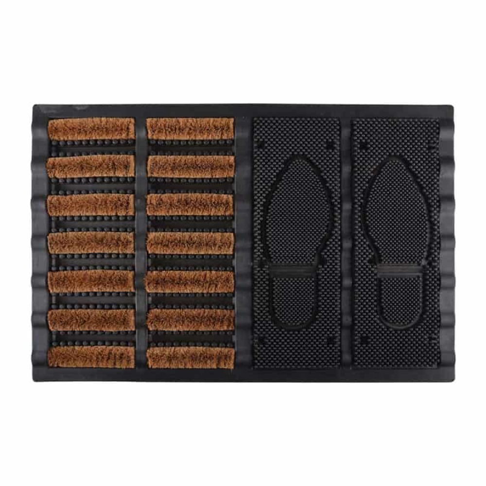 Ce paillasson bi matiÈre brosse et caoutchouc est idÉal pour nettoyer les chaussures grâce À sa conception robuste et durable.Le caoutchouc avec des brosses en fibre de coco aide À Éliminer la saletÉ tenace et grossiÈre des chaussures.La conception en caoutchouc de la piÈce garantit une stabilitÉ lorsque le tapis est en place.