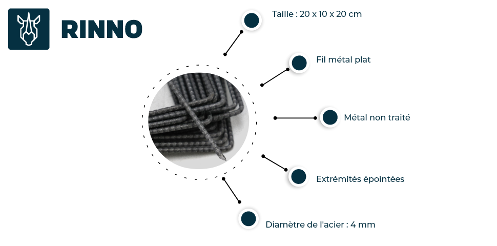 Diamètre de l’acier : mm Agrafes : crantées en métal Taille : 20 x 10 x 20 cm Conditionnement : Lot de 25 piècesInformations complémentaires