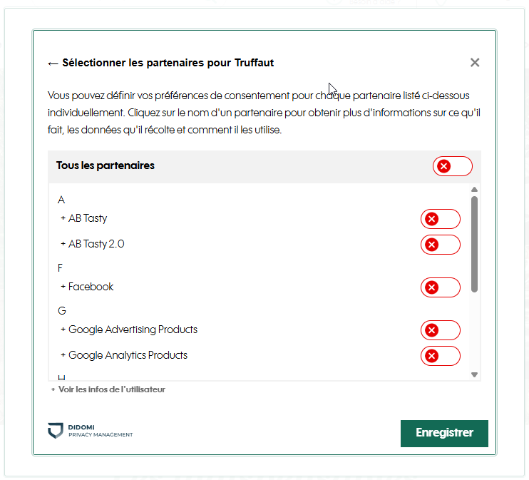 | · Envoi d’informations et d’offres commerciales par des partenaires de Truffaut | ||